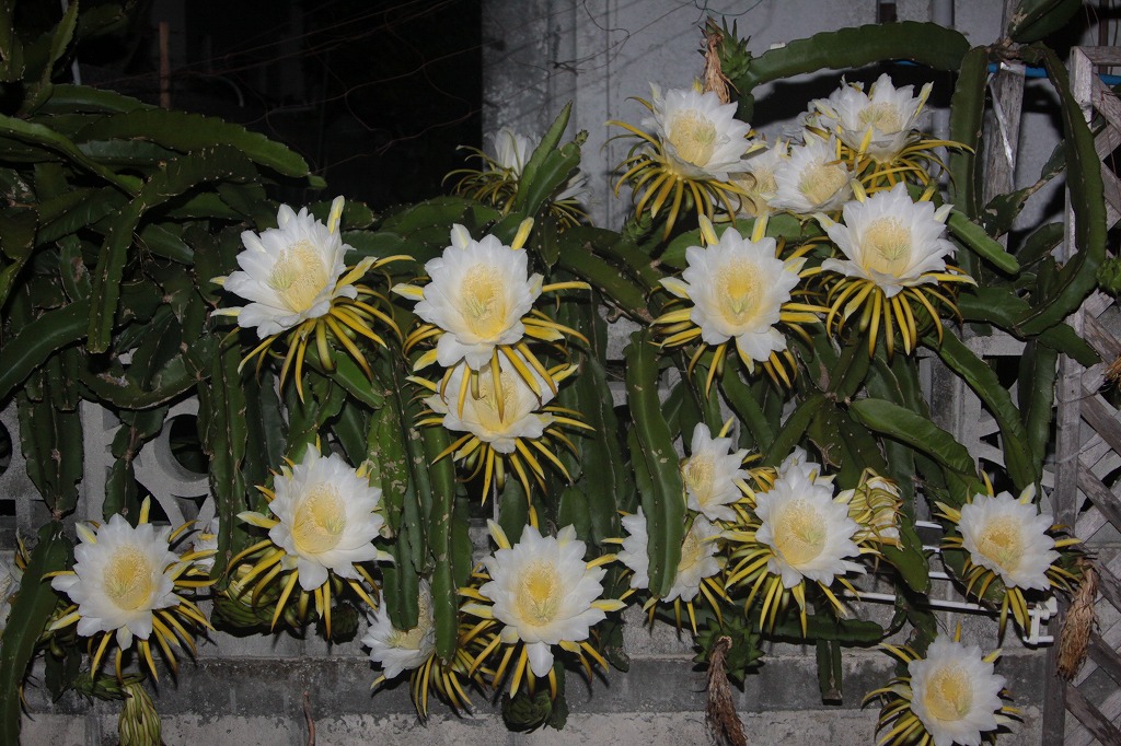 一気に開花したドラゴンフルーツの花 1日午後11時すぎ 平良西里 宮古毎日新聞社ホームページ 宮古島の最新ニュースが満載